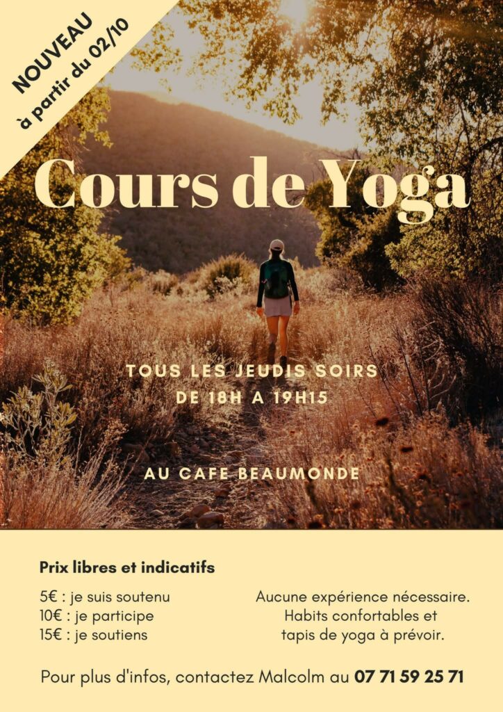 cours de yoga au CAFÉ Beaumonde à partir du 2 octobre.